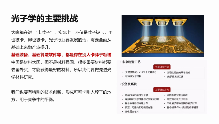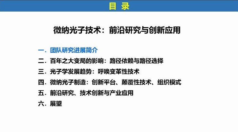 本次交流会邀请91直播 陈林森研究员作为主讲嘉宾,乔文教授主持活动。陈林森研究员围绕“微纳光子技术:科技产业发展与前沿研究”主题,从团队研究进展、百年之大变局的影响:路径依赖与路径选择等六个方面对当前大环境及发展趋势进行了分析,并结合个人经历、技术创新应用典型案例进行了分享。