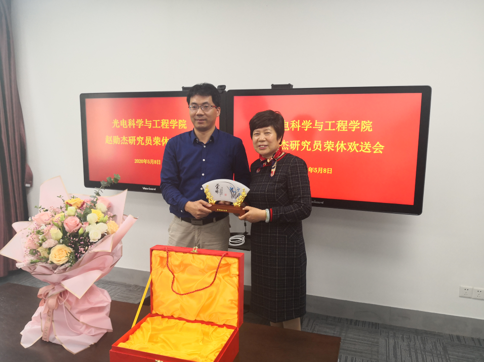 李孝峰高度肯定了赵勋杰研究员高尚的师德与精湛的师技。期待赵老师在退休后,能继续发挥余热,弘扬循循善诱的师风,传导精深高超的师技,进一步提升光电学院尊师重教的好氛围。
